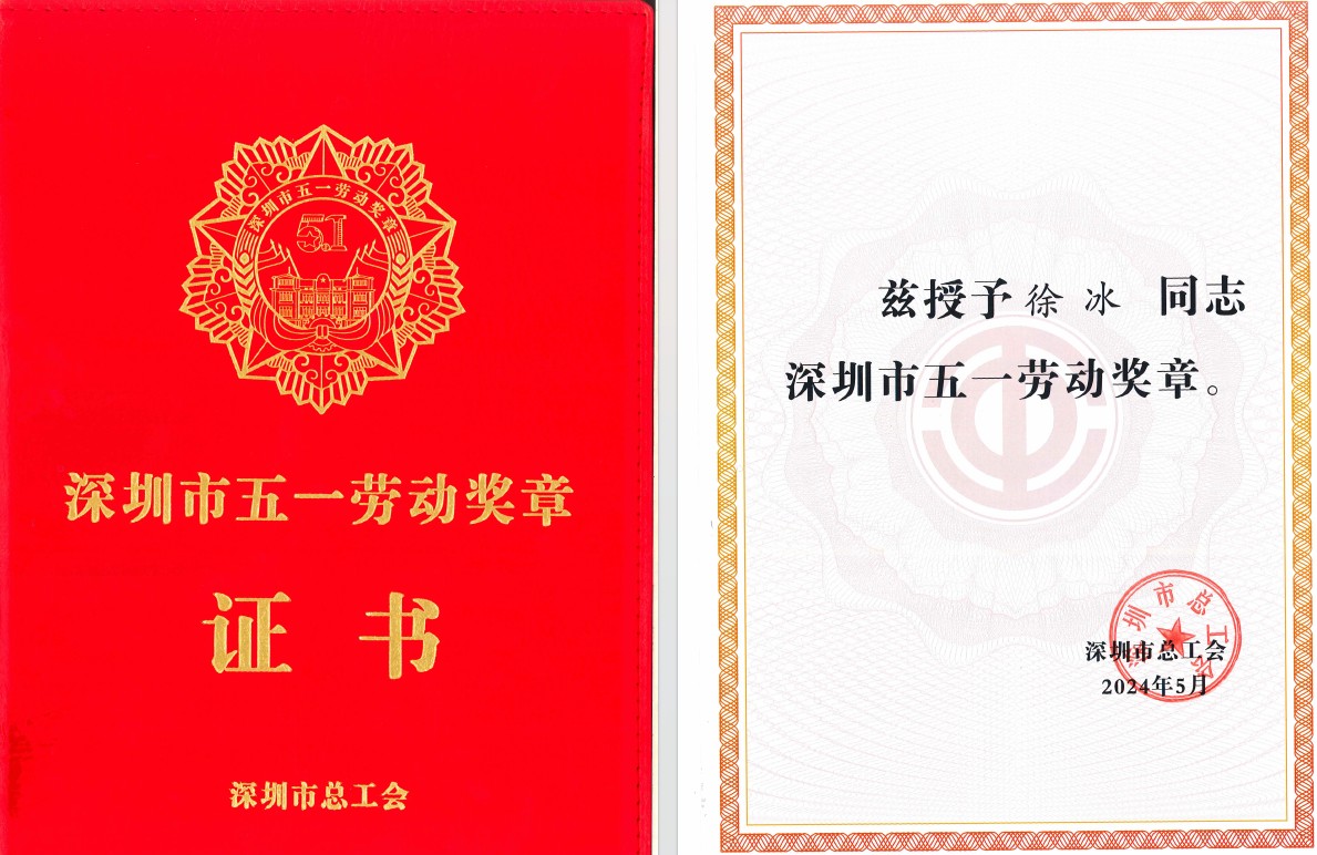 热烈祝贺公司徐冰博士荣获2024年深圳市五一劳动奖章,这枚沉甸甸的奖章是他在平凡的工作岗位上不断钻研,无私奉献,开拓创新而取得的不平凡的成绩。一份耕耘,一份收获,是金子总会发光~