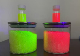 不同于二元CdSe/ZnS量子点,广东会创新科技研发的三元CdSeS、四元合金CdZnSSe量子点,以及QLuMiS复合结构量子点微球,